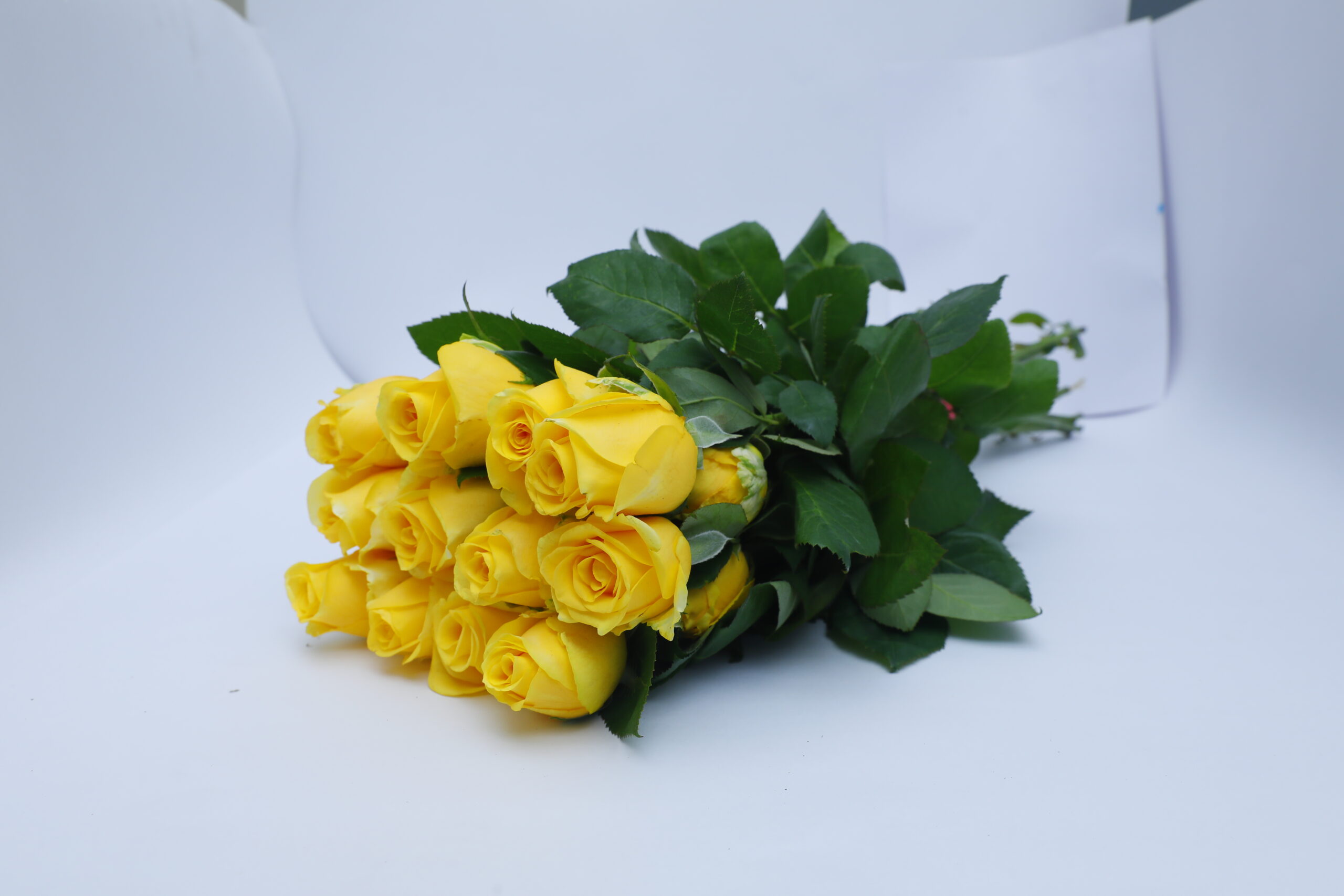 - This yellow rose has an elegant shape and color with its fresh, light yellow hue, complemented by beautiful dark green leaves and few or no prickles. Its bright colors mix warm shades of yellow, gold, and amber that really pop. This rose is perfect for bringing a little warmth and cheer to your garden or any bouquet!